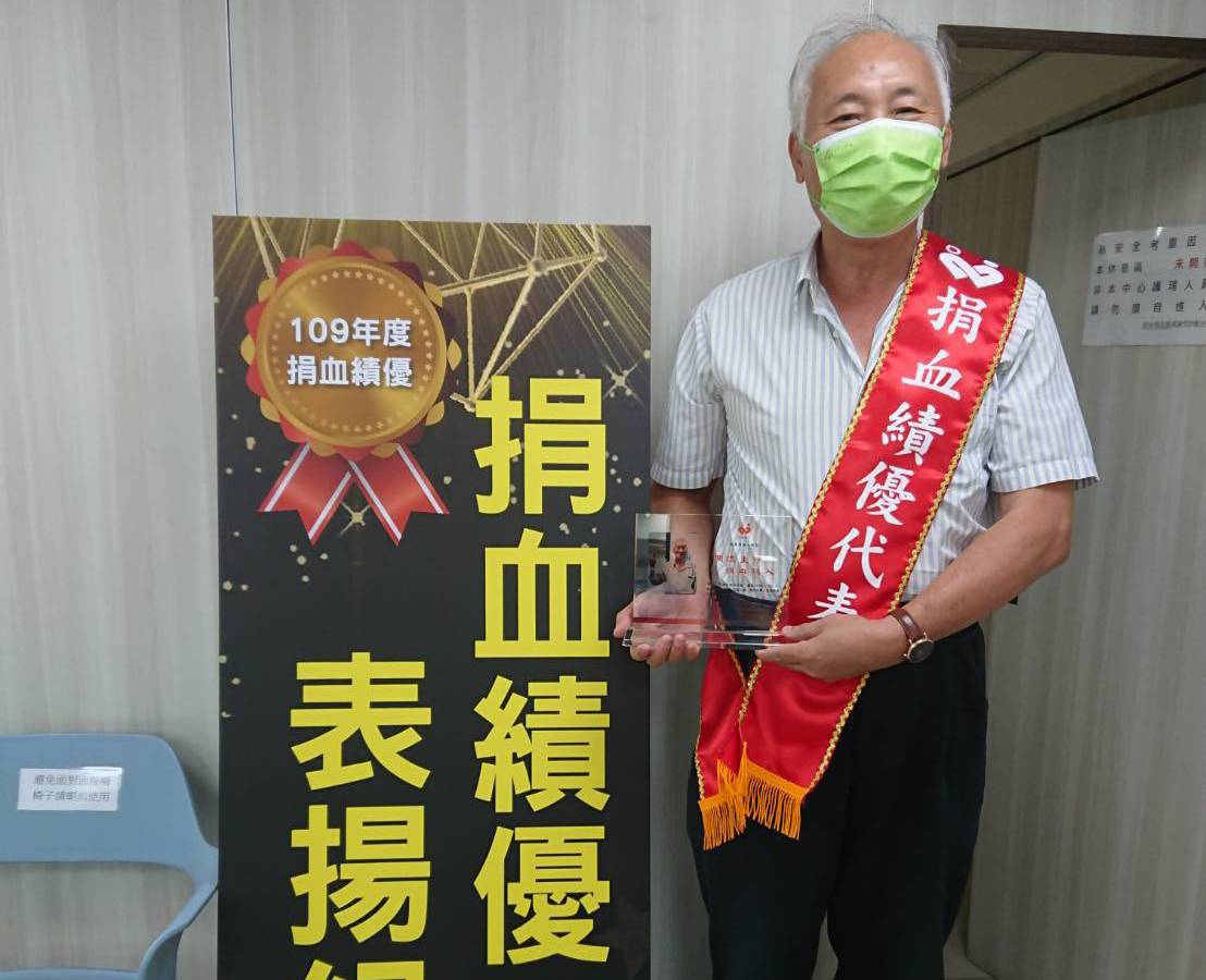 不知不覺中,加入捐血人的行列已過了34個年頭,捐血次數達成了1062次,日前獲得高雄捐血中心109年度捐分離術千次績優代表,而有幸的是兒子也接棒成為快樂的捐血人,一起加入「捐血一袋,救人一命」!