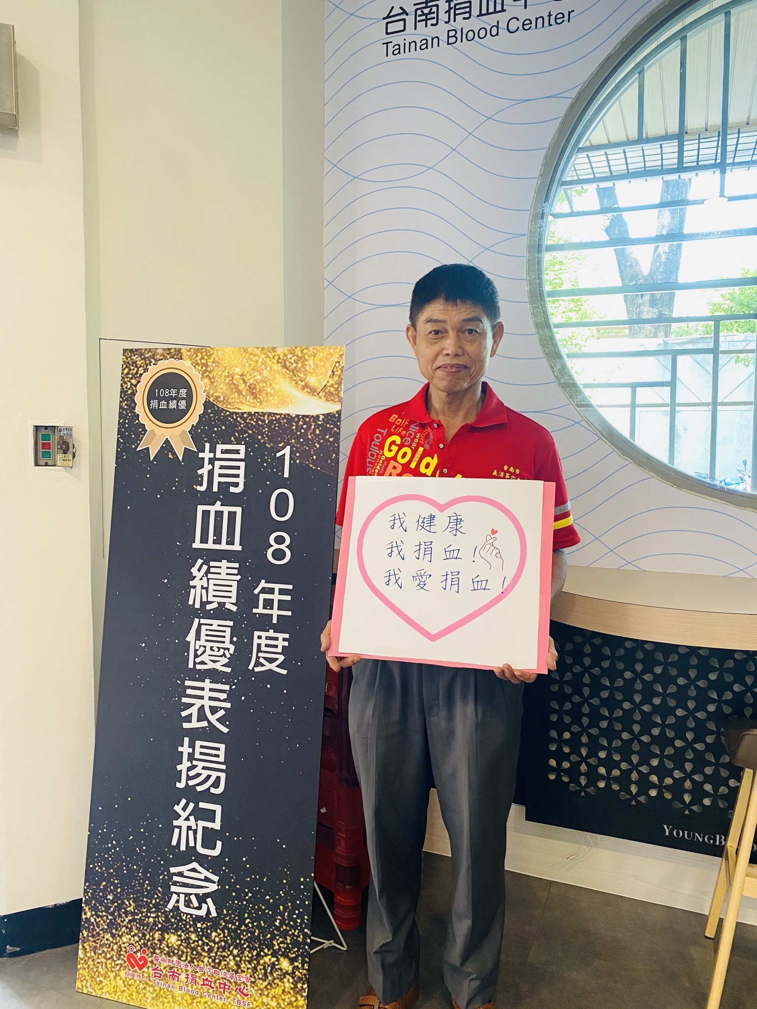 以汽機車電池為業的李秋金,店面就位於武聖路上,他是今年捐血績優代表人,對於捐血相當堅持,深入聊過後,發現他更像是充電電池般,熱情似乎都用不完,每次捐血完就等待下次時間到來,宛如等待蓄飽電再繼續出發,分享自己健康的血液。