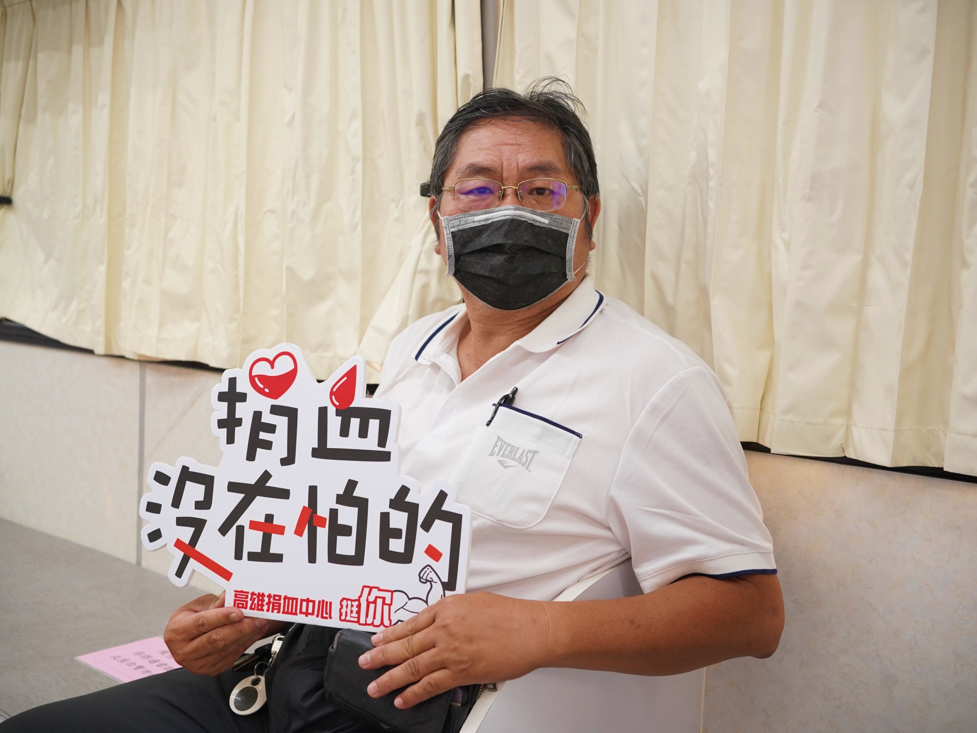 捐血時,柯成達穿著棉質POLO衫跟西裝褲,腰上繫著手機包跟一大串鑰匙,走起路來鑰匙們碰撞得噹噹作響,人一出場自帶音效,搭配著豪爽笑容與曬得均勻的膚色,說起話來臉上紋路明顯深刻,頗有鄉下隔壁家阿伯的感覺,散發出親切自然,讓人忍不住想與他多交談幾句。