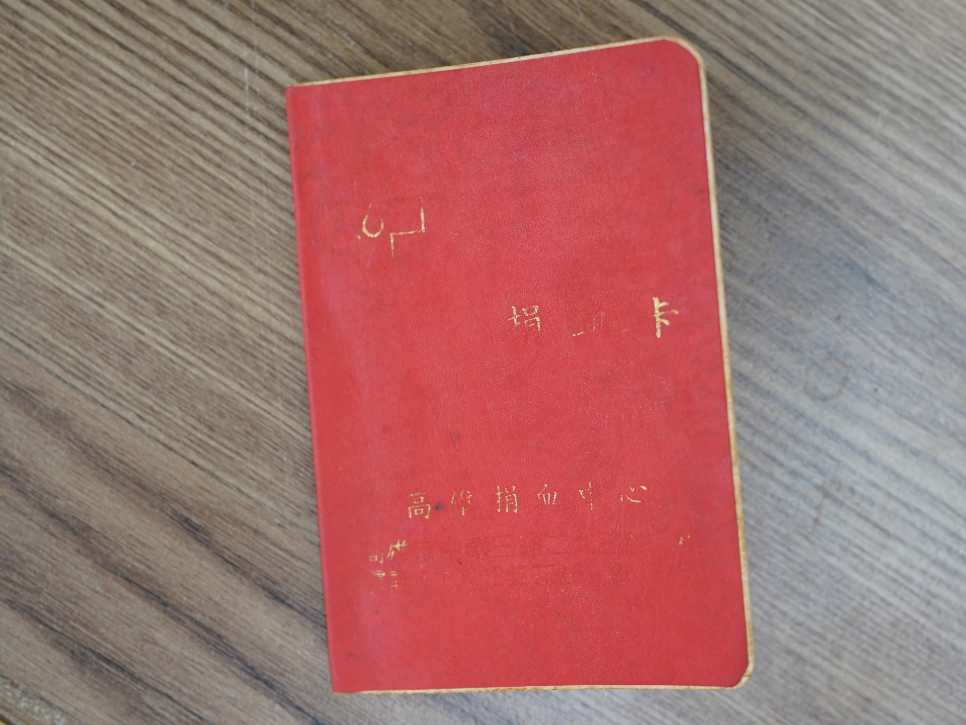 老舊的紅皮捐血卡已經褪色,裡頭記載著楊俊彥的捐血紀錄。