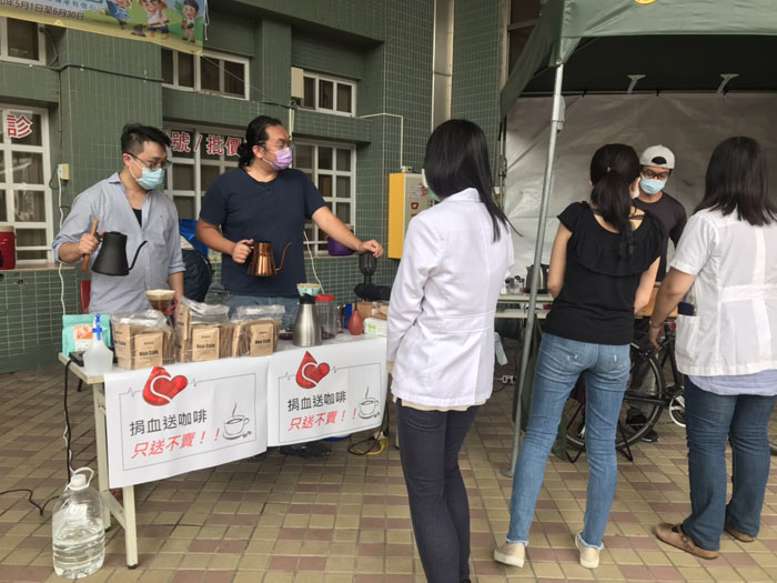 本次活動,最令人感動的是一群年輕人(放逐咖啡、參咖啡、NEO咖啡、豆點咖啡)帶著咖啡豆以及沖煮的各樣器材來到現場,為挽袖的捐血人以及辛苦的醫護人員,沖一杯暖心的現煮手沖咖啡。熱愛咖啡也熱愛生命的年輕人默默地付出,用熱血與熱情傳遞善意與溫暖,幫助需要幫助的人,誰說這不是最美麗的風景!