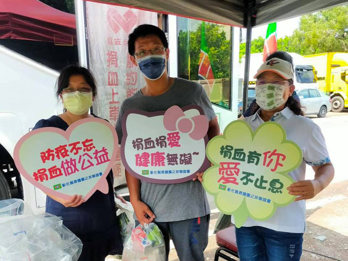 彰化救國團多年來在團友會各屆會長號召下,由各鄉鎮市團委會、真善美聯誼會及工青隊每年承辦10~12場的捐血場次,共募集上萬袋血液。110年因新冠疫情全台人心惶惶,更甚影響民眾捐血意願,全台血庫存量全面告急,彰化救國團得知消息後,號召團友會及26鄉鎮市義工伙伴捐血總動員加開捐血場次,團友會立馬答應加開四場次,施鳳銘會長帶領團友會幹部伙伴們全程進行服務支援捐血中心,力挺醫護量能。