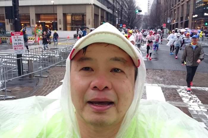 張正忠於2019東京馬拉松賽道終點前自拍。(照片提供/張正忠)