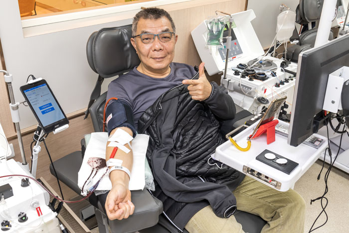 因有正職工作,以往只能選擇假日前往捐血室捐血的李財龍,笑說自己終於不用假日來排隊,往後來捐血可輕鬆多了。年屆62歲的他,多年前曾發生血壓問題而無法捐血,特別到振興醫院去看心臟血管科,現在也固定服用血壓藥,這是他身體方面唯一需要注意的事;也因此特別感謝捐血中心的集點紀念品有血壓計可以兌換,讓他可以輕鬆追蹤自己的血壓狀態。