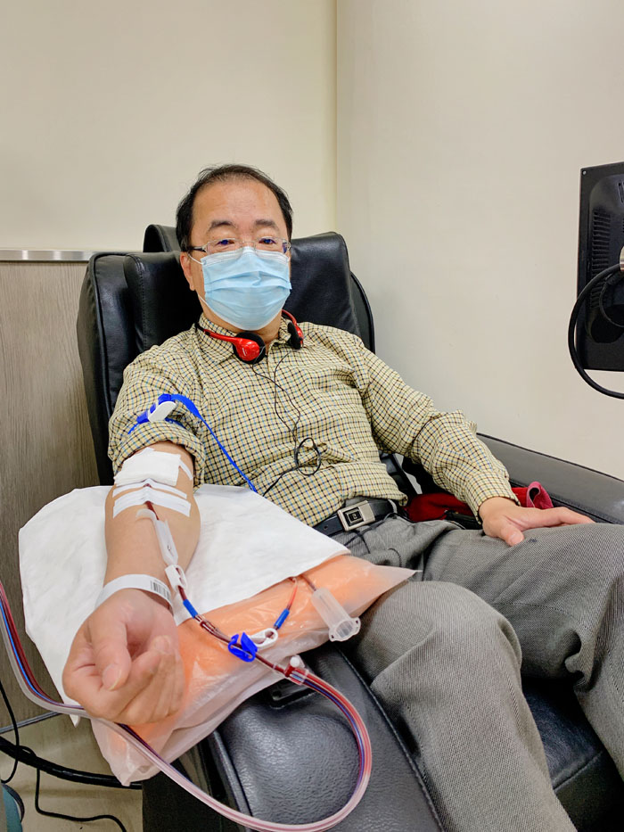 雖工作繁忙,只要捐血時間一到,江宇強一定會把事情安排妥當,向捐血站報到。