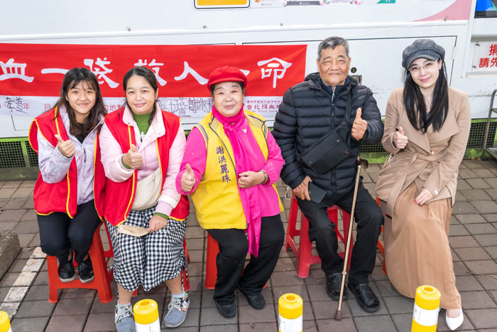 謝洪麗珠老師(左二)熱心推廣捐血,感染親朋好友共同力挺。