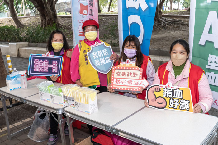 去年疫情告急,許多團體紛紛停辦捐血活動,捐血中心找洪老師幫忙,她一口答應多辦幾場全力支援。洪老師回憶,當初真是嚴陣以待,除了戴兩層口罩、帽子、護目鏡、圍巾等等一應俱全,並隨時噴酒精消毒,還找來公所的書法老師,用奇異筆在布條上寫上兩次大大的「缺血」,並到處去張貼宣傳,當時民眾對於群聚比較在意,他們也在現場宣導排隊等候距離,才讓捐血活動得以順利進行。