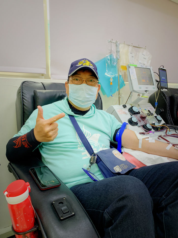 然而,他也沒能忘記那時看到了一個和自己年齡相仿的小女孩,可能是得了肺積水,他眼睜睜的看著護士阿姨拿著大大的玻璃針筒,長長的針往女孩的背上扎,抽出水來。小小年紀進出醫院,看到很多生病不健康的人,或許是小時候的經歷讓當時專三的他,雖然不甚了解捐血的流程和意義,但直覺告訴他這能幫助別人,他沒想太多就去做了,而且持續了37年;除了因工作出國而暫緩捐血,其他時間都沒有任何事情能夠阻礙他這既定的習慣。