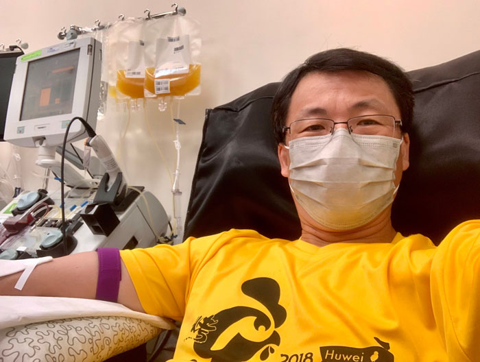 楊豪森校長於彰化捐血站捐分離術血小板。(照片提供/楊豪森)