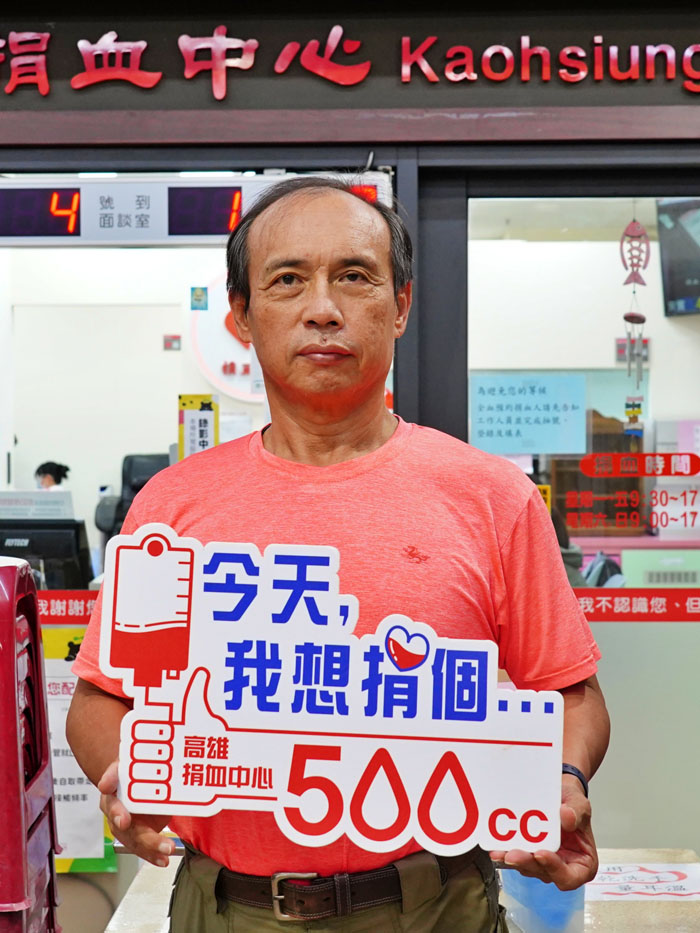 李金龍為全血績優捐血人代表,每次捐血都捐500CC。