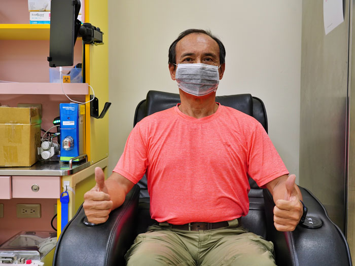 「我第一次捐血是在高中時期,在這之前對捐血認識不深,直到捐血後,看了資料以及護理師講解,才知道捐血除了幫助人,對自己的健康也很好。」李金龍雖然戴著口罩,但一雙炯炯有神的眼睛,傳遞出堅定的立場,接著他說:「退休之後,除了每天運動,就是定期捐血,我自己感覺每次捐血完後去運動,身體格外有活力,可能有助新陳代謝循環吧!」