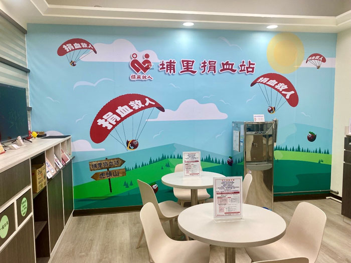 埔里捐血站在921大地震損毀後重建,歷經二十年的使用,為了提升更舒適的環境,於111年9月起開始整修,12月2日整修完成後重新開幕作業。一走進新穎的埔里捐血站,迎來的感受是非常明亮的,空間標示一目瞭然,是個讓人安心的空間;尤其是休息區牆面,可愛的血寶寶在飛行傘上翱翔,讓人看了心曠神怡,也適合在休息區拍照留下捐血的照片回憶。