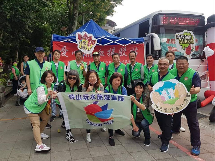 鄭家吉(後排左二)與拱天慈善功德會志工一起參與捐血服務。