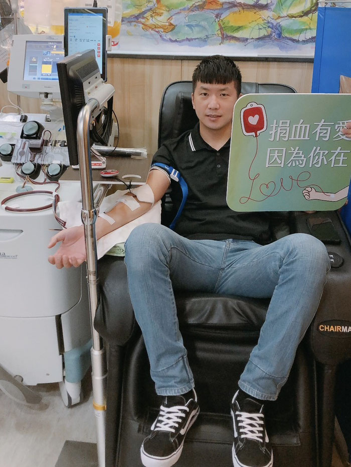 鄭遠叡於宜蘭捐血站捐分離術血小板。