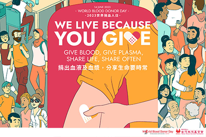2023年6月14日,全世界將再次慶祝世界捐血人日。該日於 2005 年被世界衛生大會正式指定為年度活動,藉此慶祝也感謝世界各地的自願捐血人他們捐血的禮物,已成為醫療用血獲得安全血液的主要來源。