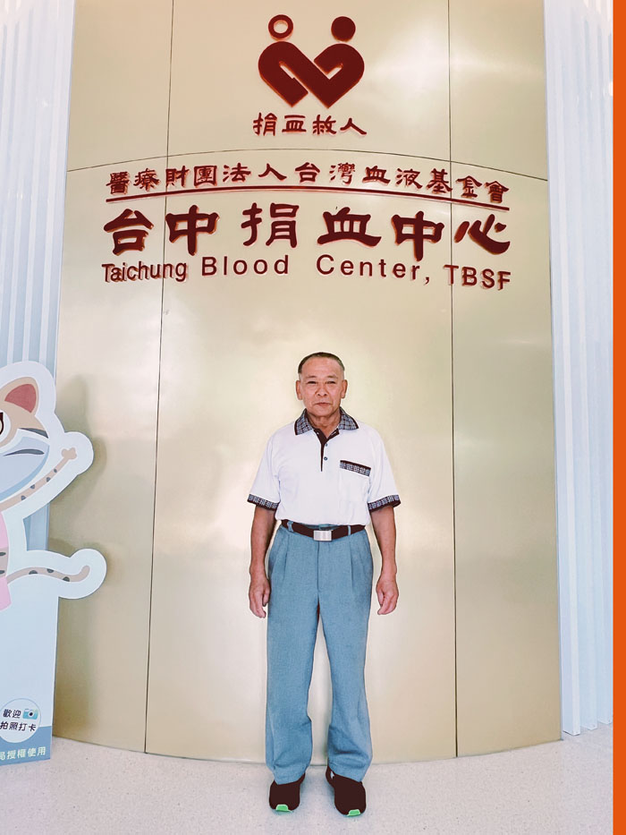 體格精實,紅光滿面,丁錦煌笑起來有著屬於南部陽光的樸實與燦爛。45歲才從台南搬來台中,這近二十年來,台中捐血中心跟他的生活早已密不可分。