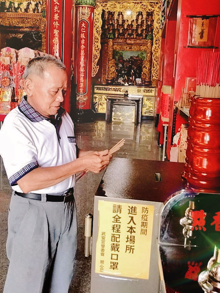 丁錦煌現在每天的工作之一就是在神岡武安宮服務,心裡有很多歡喜感。(照片提供/丁錦煌)