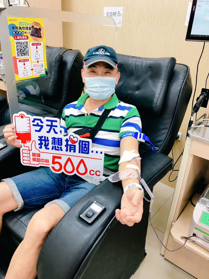 畢業後他提前入伍,又抽到「金馬獎」到馬祖南竿當兵,在部隊裡要安排時間捐血,比較沒那麼容易。回到家鄉接手父親的事業後,因為每個月總能看到捐血車停在店門對面,他便自然養成了固定捐血的好習慣。