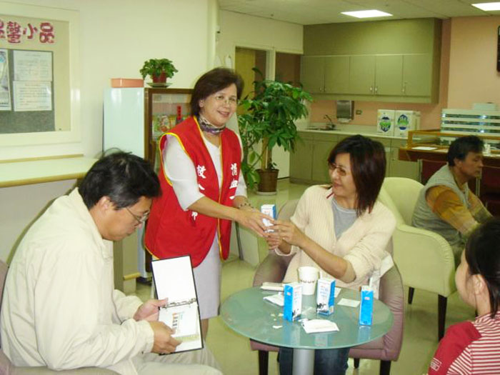 民國94年藍高玉雲(左2)在關渡捐血室志工服務情景