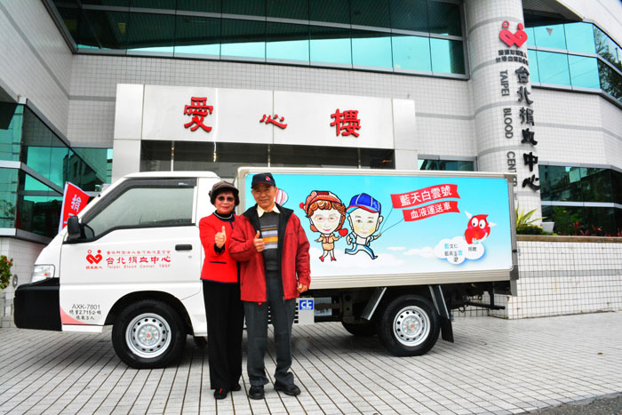 「先生姓藍,是藍天,我是白雲,選在結婚50週年紀念日是想說可以留做紀念,運血車上的畫板還是兒子設計的呢!」笑著解釋「藍天白雲號」的來龍去脈,藍高玉雲很感謝家人全力支持做公益,「先生還會問說什麼時候要再捐第二部,捐血中心十年淘汰一次,血液運送車捐到現在也快六年了,應該很快就能再捐了!」