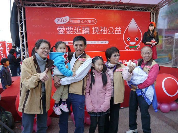 65歲屆齡最後一次捐血,剛好碰上西堤舉辦捐血活動,藍高玉雲一家三代同堂受邀出席共襄盛舉。