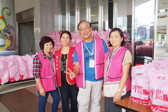 民國102年捐血績優表揚大會,陳秀慧(右1)於大會現場服務。