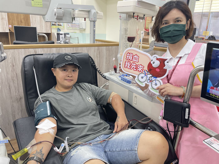 18歲的時候,在新竹東門城圓環看到捐血車,就這樣捐了第一次的血,定期捐血成為她的日常。至今累積全血捐血43單位、分離術血小板捐血718單位。