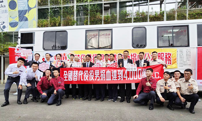 自民國96年起,內政部鼓勵役男從事學童課業輔導、老人關懷及社區綠美化等公益服務;以公益捐血活動為例,17年來,各地替代役男捐血活動從未間斷。當日替代役男捐血量突破4000萬cc,並產生捐血達到4000萬cc及前後捐血之替代役男三名,安排現場上台受表揚是為意外驚喜。