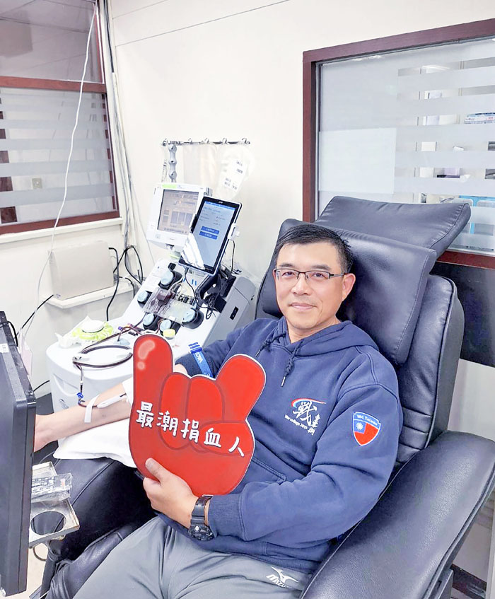 「我不過是盡一點個人綿薄之力!」他笑著說,「其實我一直有個信念,唯有健康,才能捐血。不論是全血還是分離術血小板,雖然頻率與所需時間不同,但共同點是,你必須維持良好的健康狀況,包括睡眠與飲食的平衡。特別是分離術兩週一次的頻率,透過每次的血液篩檢,可以即時掌握健康指數,也讓我更謹慎地看待自己的健康管理。」