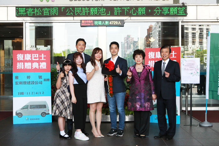 捐助復康巴士予台北市,全家一起見證光榮時刻,台北市市長蔣萬安特別撥冗出席捐贈儀式以表達感謝。
