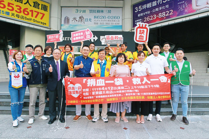 112年就在楊雅婷生日當天,在公司附近的賣場前辦理捐血活動,蘭興里里長林文龍(前排左1)以及台北市議員張斯綱(左4)都前來響應。