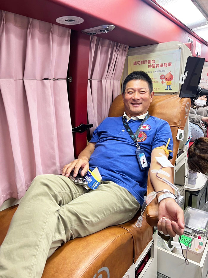 捷亮科技股份有限公司董事長林芳宏以實際行動響應捐血。