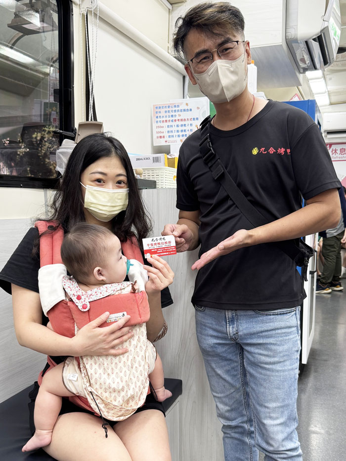 九合脆皮烤鴨太平店老闆蔡孟宗贈送兌換券給捐血人。