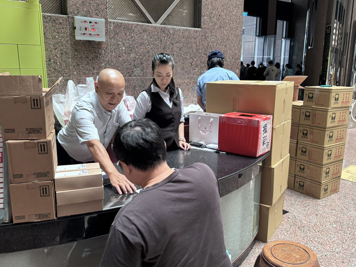 台灣商務中心大廈管理委員會主委孫國志先生(左)協助捐血人服務。
