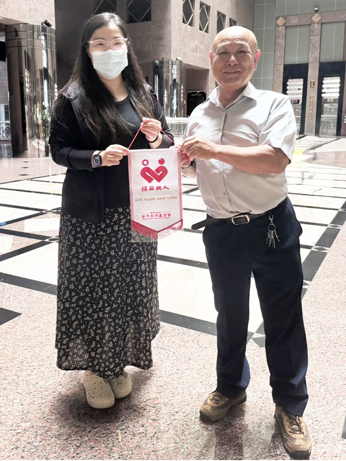 如今,孫國志主委即將卸下職務,邁向人生新階段。為感謝他多年來對捐血活動的熱忱投入與無私奉獻,台中捐血中心特別致贈錦旗致意,也期盼這份熱血精神能夠繼續傳承,延續愛的力量。