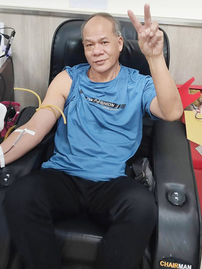 知福惜福樂天助人的徐文慶在板橋捐血站捐全血500cc(攝影/許碧珠)