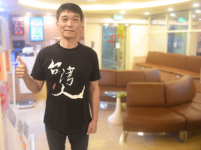 從事貿易業的蔡俊賢,在今年五月全血捐血達217袋,累積超過50公升,這份熱血堅持一如他衣服上的字樣,這是台灣人的軟實力──熱血助人的精神。