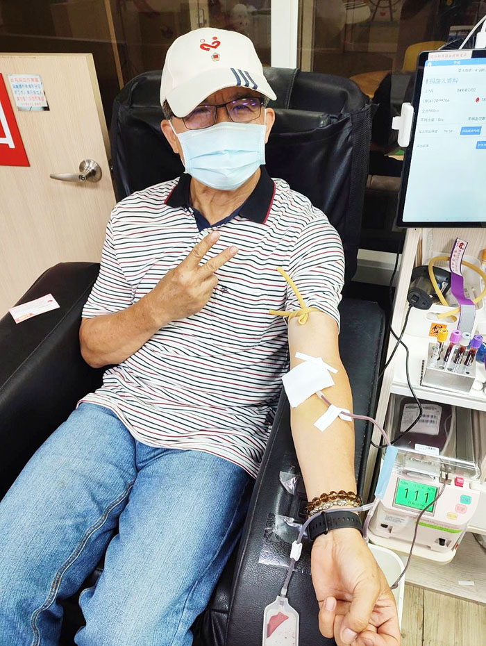 講話充滿感染力的他,就這樣拉到不少朋友一起來捐血,大家都是一捐就捐到現在。如今,他身邊的朋友大多和他一樣上了年紀,都快要不能捐血了,他的「分享」對象就變成了朋友們的兒孫。