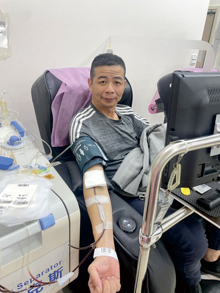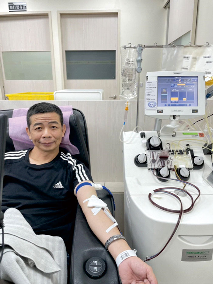 血型特殊緣故,陳保宗改捐分離術血小板。