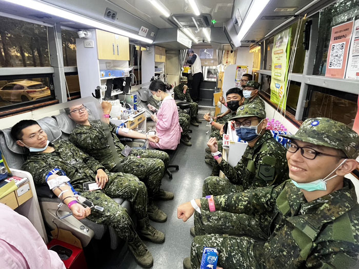 大部分義務役為首次捐血者,彼此鼓勵一同前往捐血。