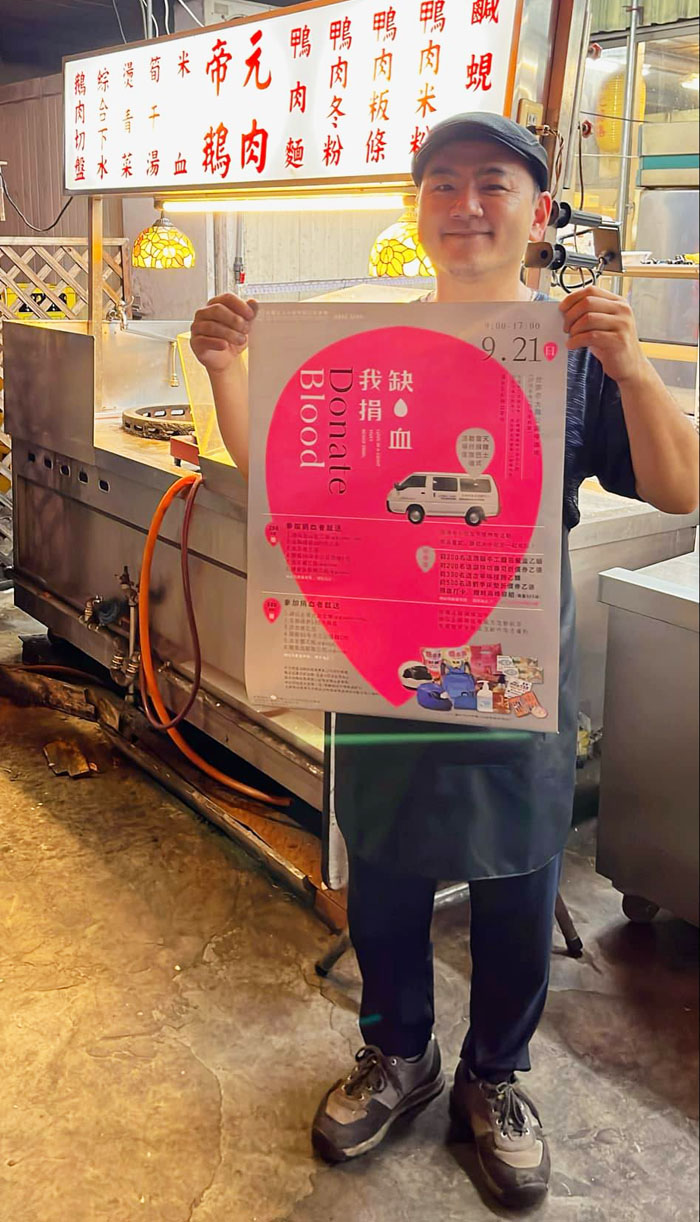 加入回社慈善會待用餐店家也幫忙張貼海報。