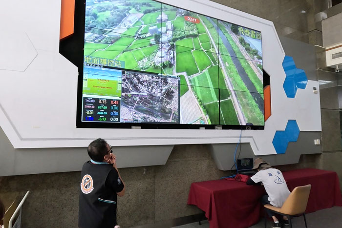 無人機飛行過程,全程由中控中心(螢幕左下角)同步監控。