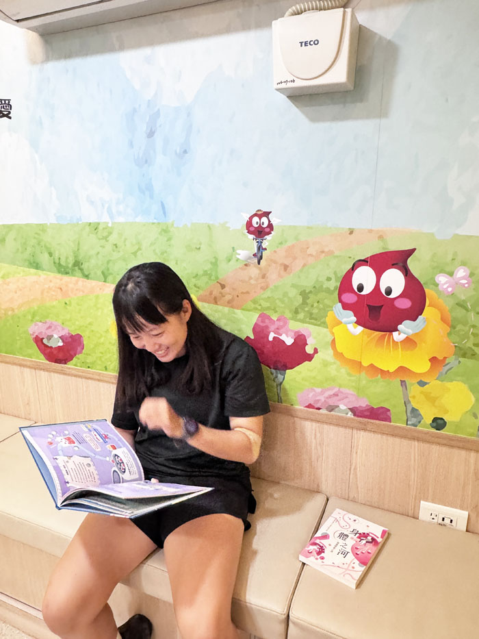 雖然平時常看到捐血宣導和捐血車,但真正踏進捐血室後,卻是另一番景象。「我一直以為那個針跟一般打針的針一樣,沒想到竟然粗很多!」她笑著回憶,「但既然都填了同意書,也坐上捐血椅了,就一定要捐!」怕丟臉的她,硬是咬牙完成第一次捐血。那天沒有感覺到太多疼痛,卻收穫了一種前所未有的滿足感——「那時捐完,生理上的感覺還好,但心理上的滿足和開心我永遠不會忘記!我始終覺得自己做了一件很好的事、很不一樣的事,這樣的感覺也是讓我能夠持續捐下去的動力。」