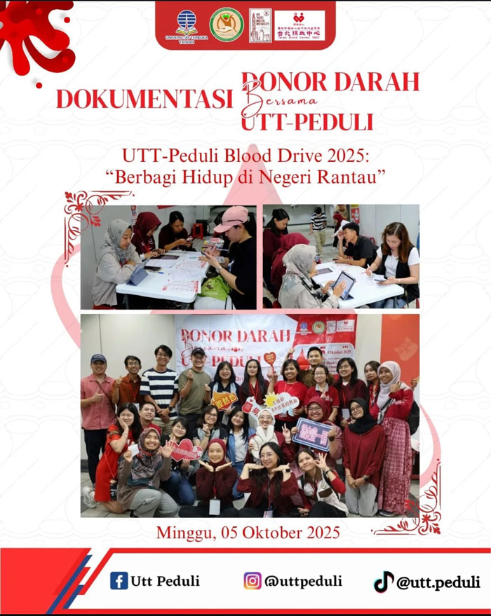 在這次捐血活動展開之前,UTT Peduli 便與協辦單位積極展開宣傳行動,包括PPI TMU、Rti中央廣播電台印尼語節目等夥伴,共同在各大社群平台上密集宣傳,希望將這份愛心擴散至更多人。各單位不遺餘力,投入大量時間與心力,讓活動訊息廣為人知,也鼓舞了許多印尼社群的朋友踴躍響應。