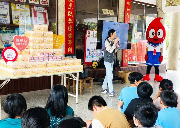 愛心餐盒每月定期送往偏鄉部落小學,而這次高雄捐血中心工作人員特地前往屏東五溝國小參與送餐行動,並進行捐血知識宣導與介紹本次送愛到部落的模式。透過這一次的互動,讓學生們更了解手中餐盒的意義,也傳達出捐血人無私付出的心意,這份餐盒,正是最即時、也最溫暖的祝福。