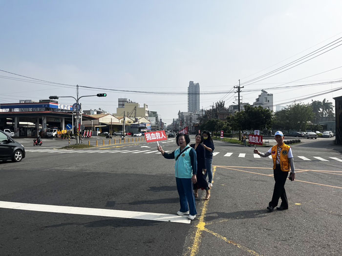 獅友們前往路口輪流舉牌邀請過路民眾加入捐血行列。