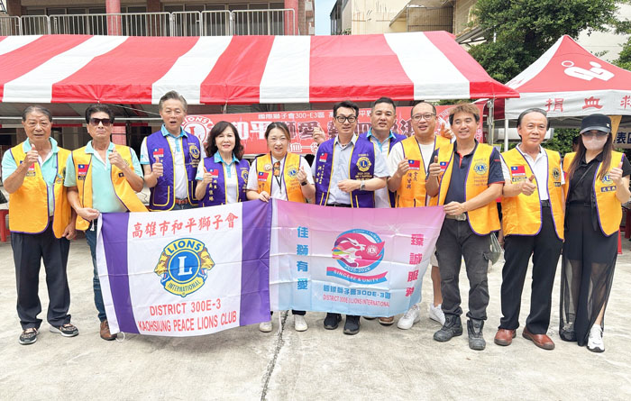 國際獅子會300 E-3區高雄市和平獅子會在捐血活動現場合影。