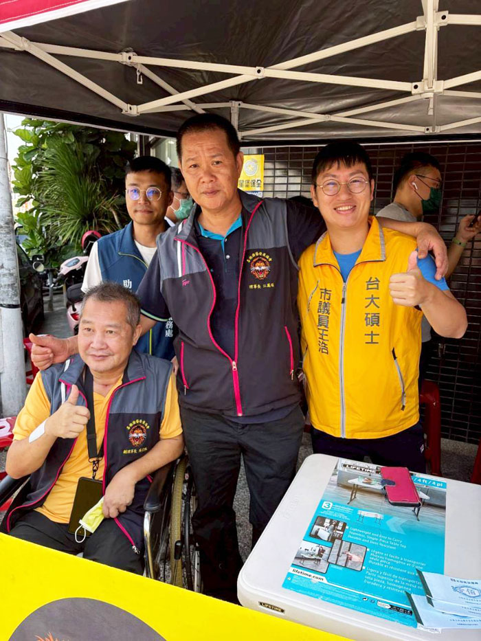 喜樂廚藝理事長江萬順(中)帶領協會舉辦捐血活動,市議員王浩也到場支持。