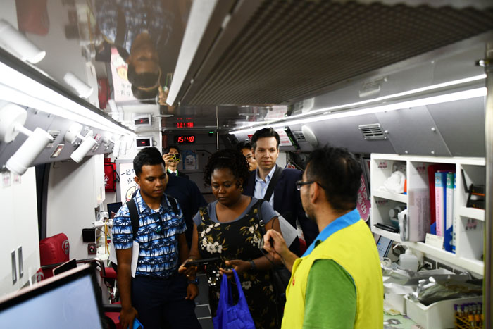 國際訪賓參觀電動捐血車,希望能將觀摩經驗帶回,公益結合永續最好示範。