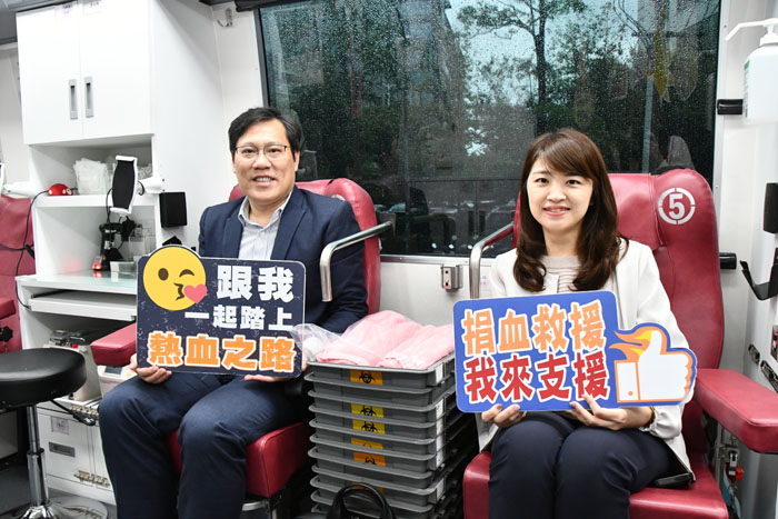 王嘉瑋董事長和政慧基金會執行秘書洪詩淳對於政慧1號、2號的功能與設備讚賞不已,也希望不久的將來能有機會合辦捐血活動。